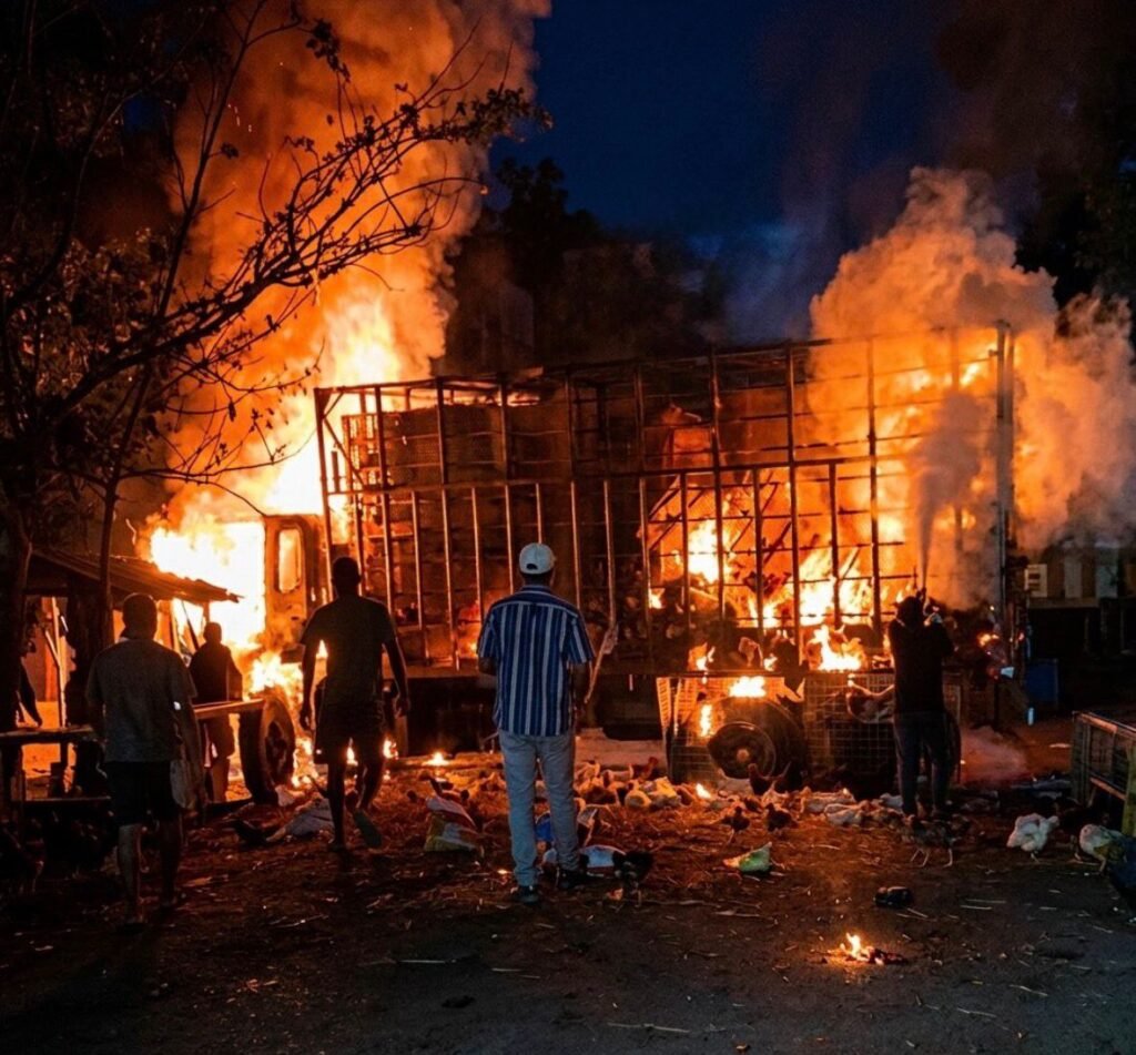 Queman camión con pollos vivos y bloquean vía en Jamundí