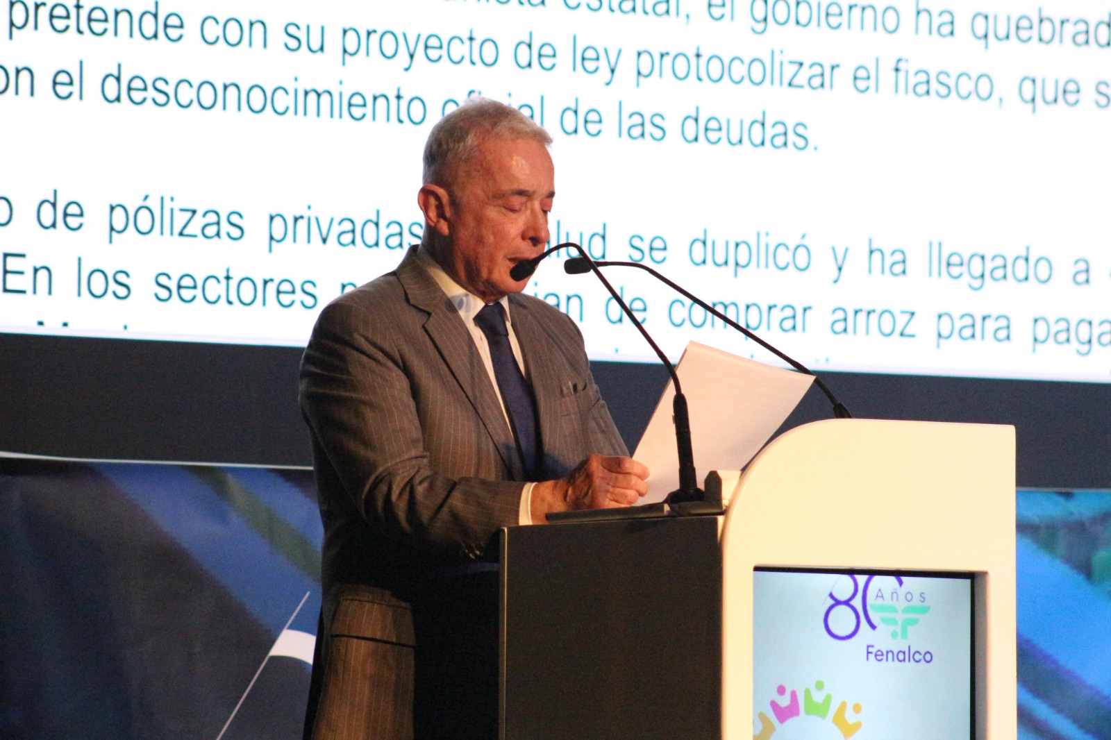 El expresidente Álvaro Uribe Vélez intervino en la asamblea de Fenalco celebrada en Medellín, donde lanzó duras críticas contra el gobierno del presidente Gustavo Petro, al que acusó de llevar al país hacia la “destrucción neocomunista” con un modelo de gasto público desbordado, altos impuestos y políticas que, según él, han golpeado al comercio, la inversión y la generación de empleo.