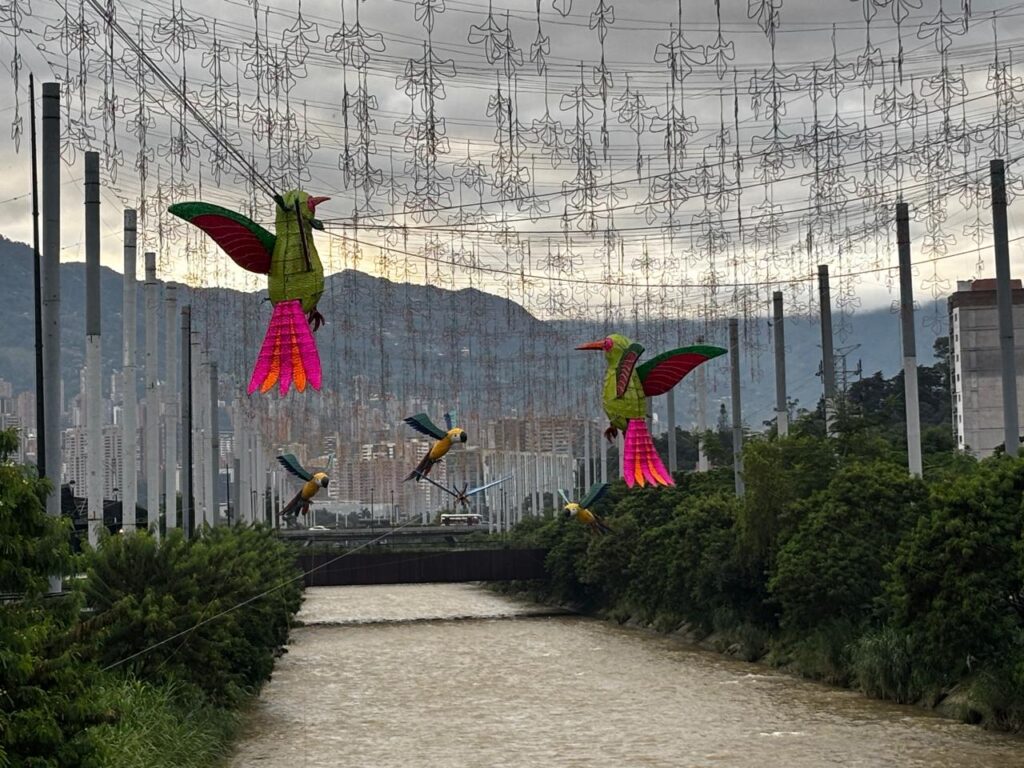 Un jardín colgante de 9.121 flores luminosas brillará sobre el río Medellín