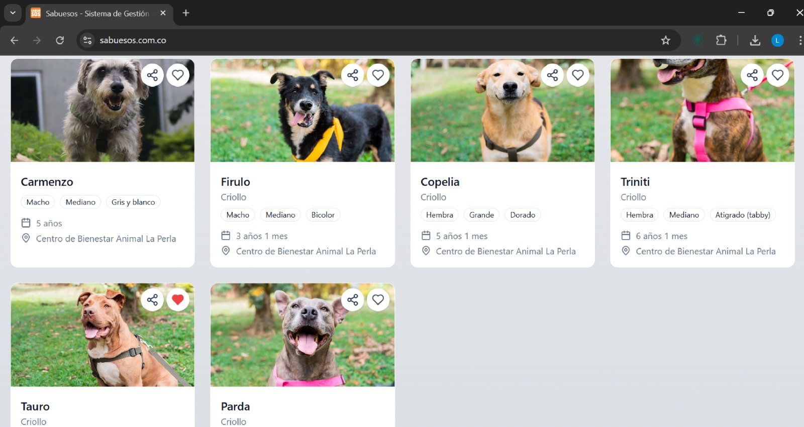 A través de la página www.sabuesos.com.co, las personas podrán ver fotos, historias, características físicas, edad y comportamiento de cada animal antes de iniciar la solicitud. La plataforma permite aplicar filtros por especie, tamaño, sexo o edad, y con un clic en “Me interesa adoptar” se diligencia el formulario en línea. La solicitud llega directamente al equipo de adopciones, que evalúa el caso y acompaña cada etapa del proceso. Además, el interesado recibe notificaciones automáticas sobre el estado del trámite.