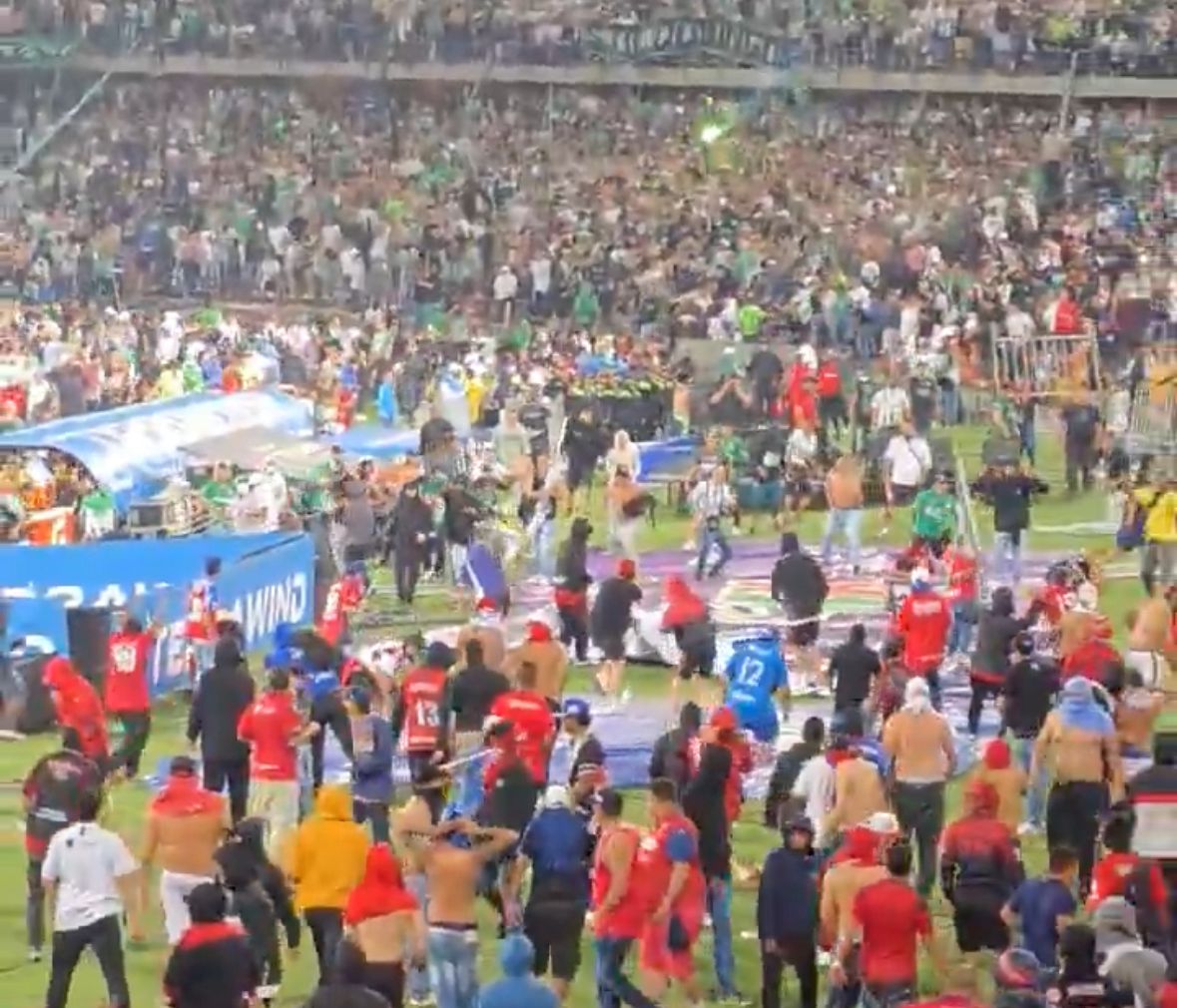 Los hechos más graves se presentaron en sectores de las tribunas norte, oriental y occidental, donde grupos de aficionados rompieron vallas, lanzaron objetos contundentes e ingresaron a la gramilla. En videos difundidos en redes sociales se observa el uso de palos, tubos y otros elementos peligrosos, lo que generó escenas de pánico entre los asistentes.