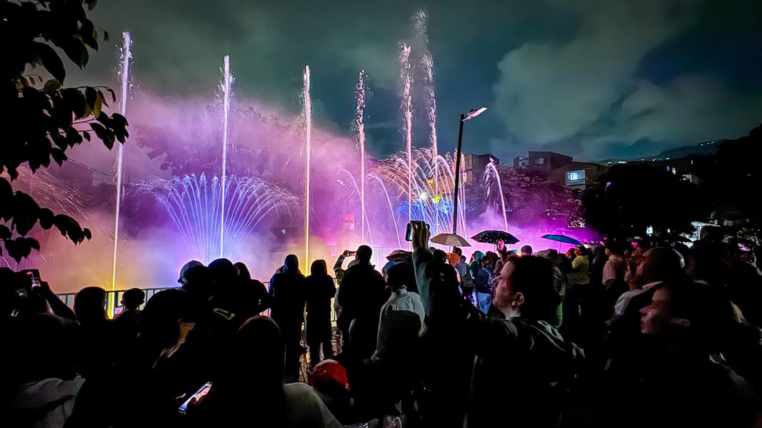 Cada presentación integra proyecciones sobre agua, efectos luminosos y música envolvente, creando una experiencia inmersiva que ya se perfila como uno de los planes imperdibles de la Navidad en Envigado.