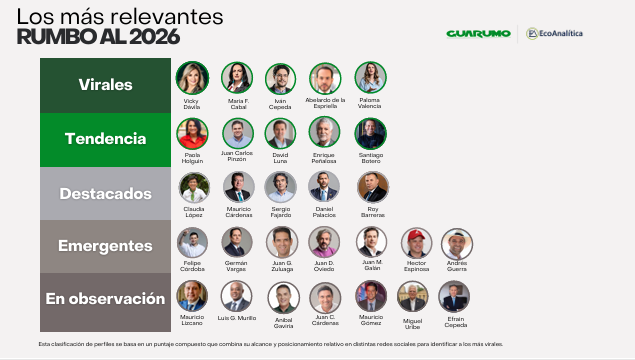 El más reciente Tracking Digital de Opinión Pública 2025, elaborado por Guarumo y EcoAnalítica, reveló los nombres que dominan la conversación política en internet y redes sociales de cara a las elecciones presidenciales de 2026.