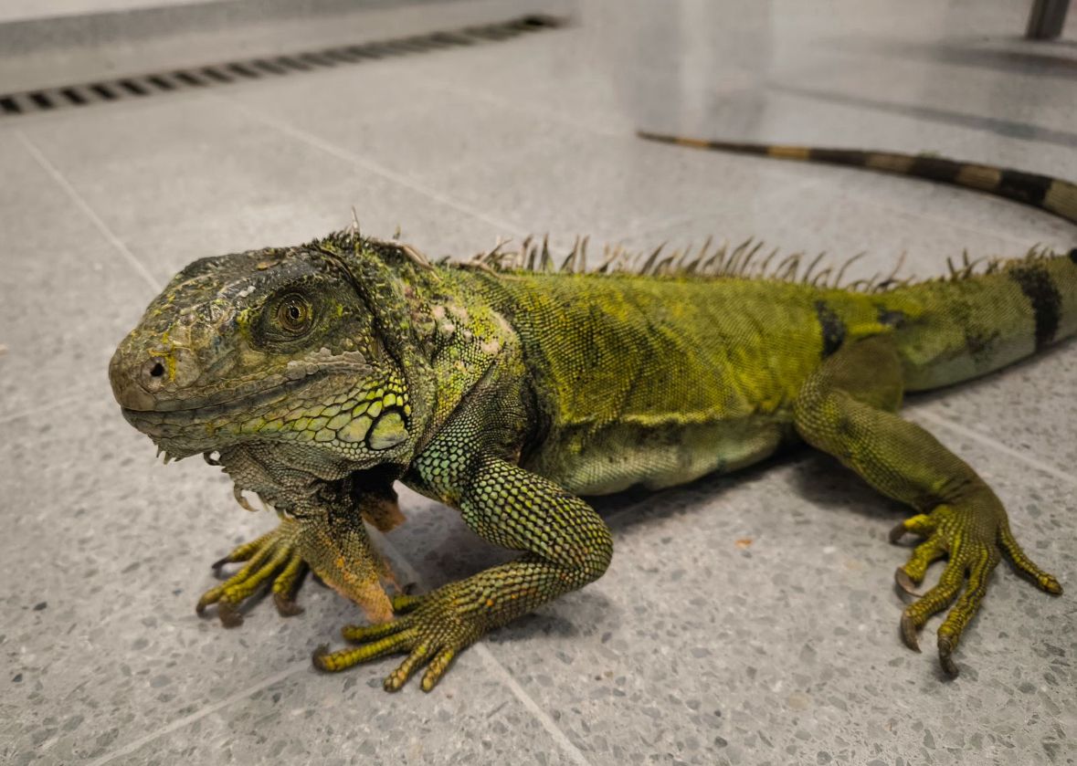 Los animales llegaron en delicado estado de salud. La iguana presentaba desnutrición, ausencia de falanges en sus patas, piel seca con descamación y pérdida total de conductas naturales: no corría ni reaccionaba como lo haría un ejemplar silvestre, lo que evidencia el impacto del cautiverio prolongado.