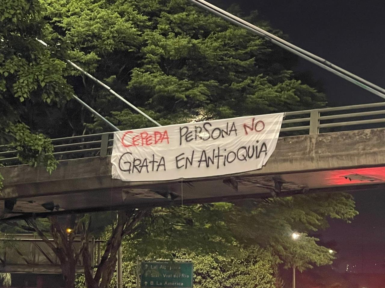 Medellín amaneció este miércoles con un hecho que no pasó desapercibido: varias pancartas colgadas en puentes peatonales y vehiculares de la ciudad con mensajes de rechazo dirigidos al senador Iván Cepeda.